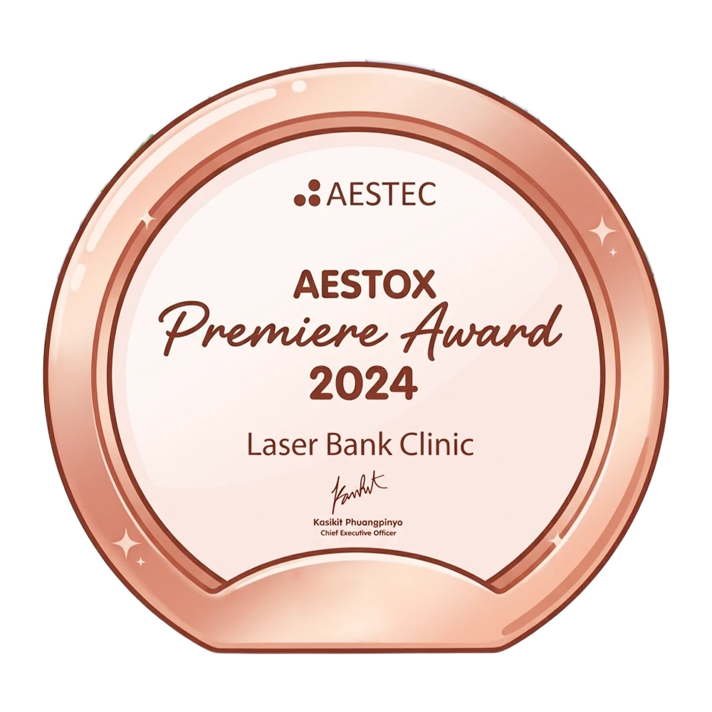 Laser Bank Clinic มอบมาตรฐานระดับประเทศให้กับผู้ใช้บริการในระดับสากล เห็นจากการได้รางวัลระดับสากลมากสุดระดับประเทศต่อเนื่องทุกปีไม่ว่าจะเป็นการใช้หัวแท้ เครื่องแท้ Program Ulthera Transducer หรือ 5Million Counting Treatment Program Thermage FLX และอื่นๆอีกมากมาย