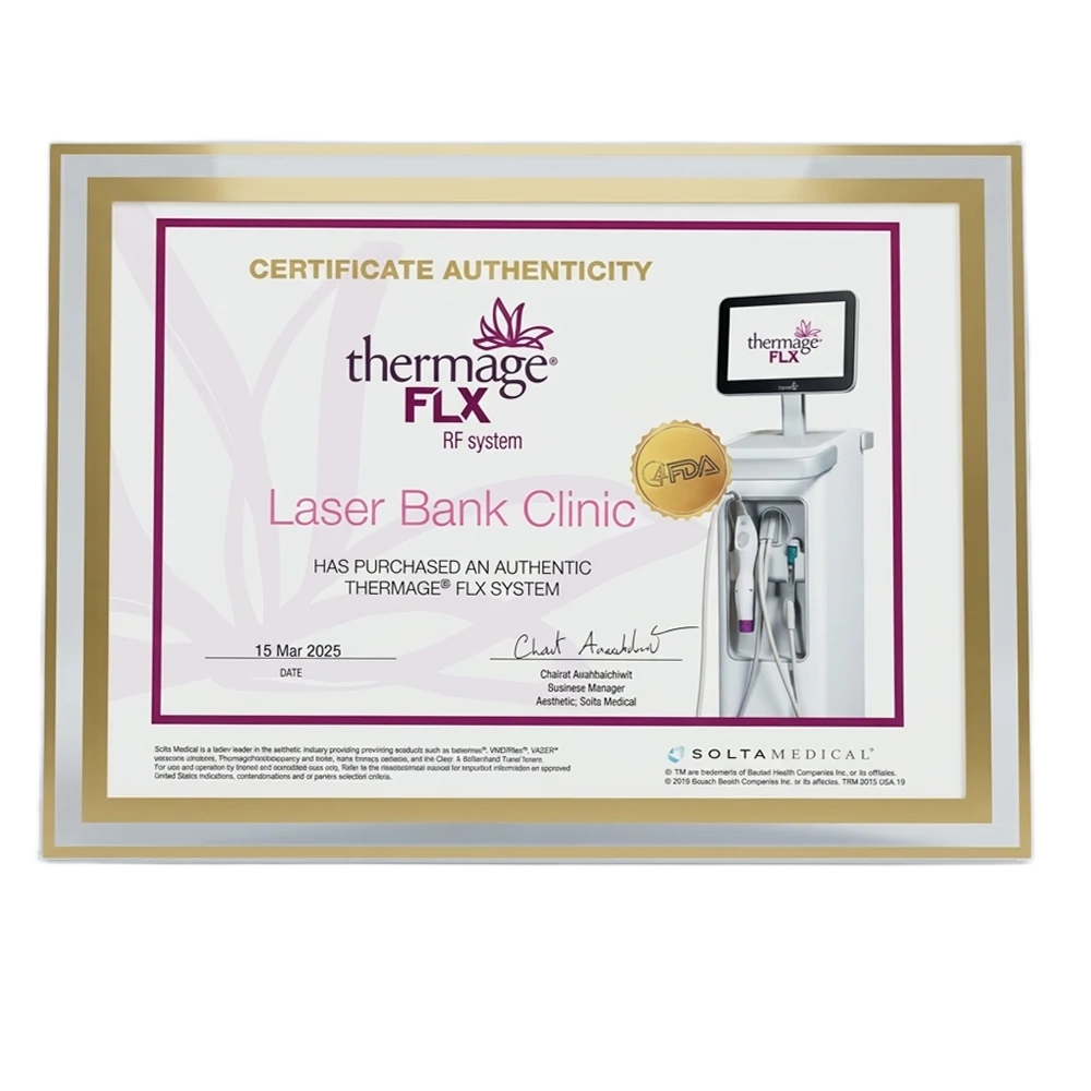 ที่ Laser Bank Clinic เราเลือกใช้เครื่องมือและเทคโนโลยีเลเซอร์ที่ทันสมัยที่สุด ซึ่งออกแบบมาเพื่อรองรับทุกสภาพผิวและทุกช่วงวัย ไม่ว่าจะเป็นผิวบอบบาง ผิวมัน หรือผิวแห้ง อุปกรณ์ทุกชิ้นผ่านการรับรองมาตรฐานความปลอดภัยระดับสากล มีประสิทธิภาพสูง เพื่อมอบผลลัพธ์ที่ดีที่สุดในการรักษาทุกประเภท ไม่ว่าจะเป็นการลดเลือนริ้วรอยหรือการฟื้นฟูสภาพผิวยิ่งไปกว่านั้น เราภูมิใจที่ได้มีเทคโนโลยีความงามระดับโลกอย่าง เทอร์มาจ และ อัลเทอร่า ที่ได้รับการยอมรับจากทั่วโลก เพื่อยกระดับผลลัพธ์ที่เห็นได้ชัด พร้อมดูแลคุณอย่างเหนือระดับในทุกมิติของความงาม